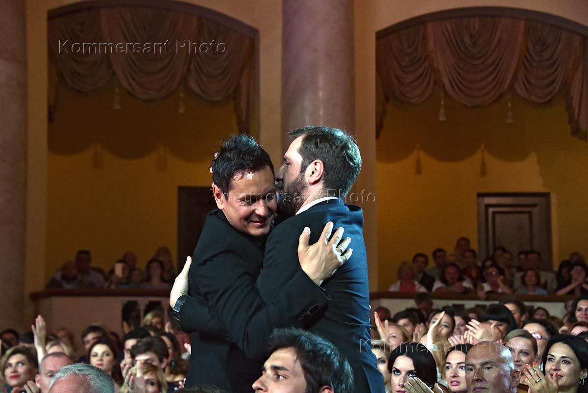 XXVIII Российский кинофестиваль "Кинотавр". День восьмой. Церемония закрытия кинофестиваля. Слева…