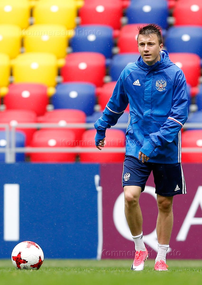 Игрок сборной команды России по футболу во время тренировки на Арене ЦСКА.