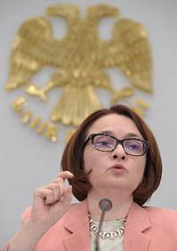 Председатель Центрального Банка (ЦБ) России Эльвира Набиуллина во время пресс-конференции,…