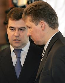 Руководитель администрации Президента России Дмитрий Медведев (слева) и глава РАО "Газпром" Алексей…
