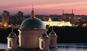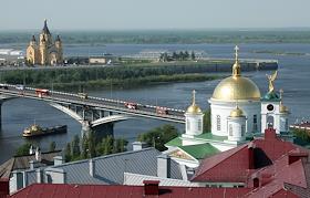 Виды Нижнего Новгорода. Стадион "Нижний Новгород", Новоярмарочный храм в честь Александра Невского…