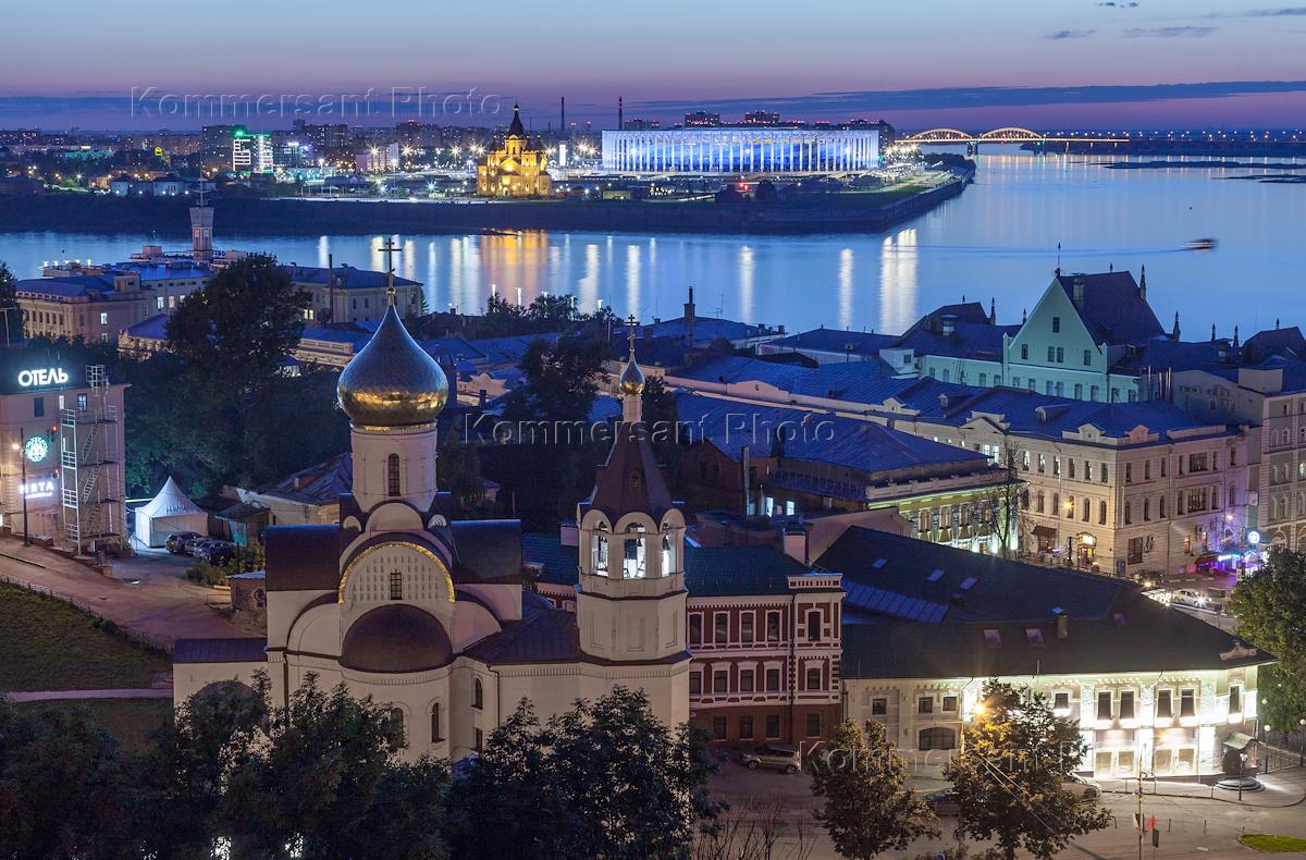 Виды Нижнего Новгорода. Стадион "Нижний Новгород", Новоярмарочный храм в честь Александра Невского…