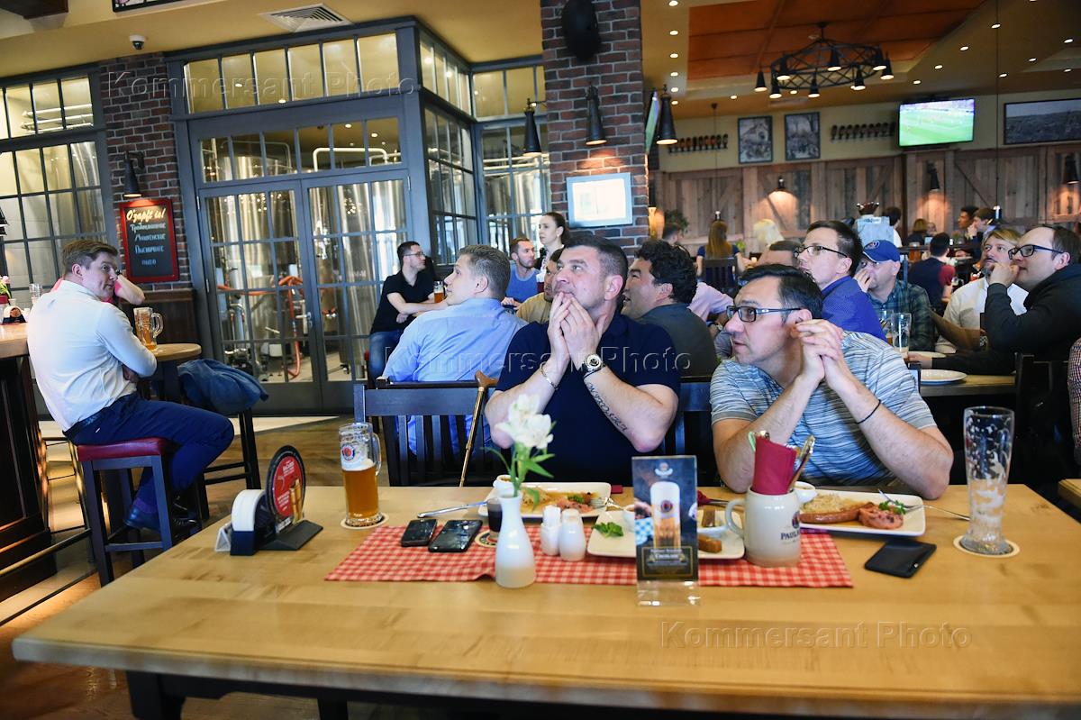 Кубок конфедераций FIFA 2017. Болельщики во время прямой трансляции футбольных матчей в пивном…