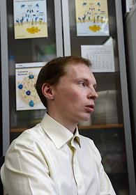 Наука Ведущий научный сотрудник лаборатории структуры и функции митохондрий НИИ физико-химической биологии имени А.Н.Белозерского Егор Плотников во время интервью.