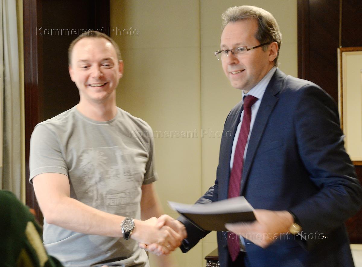 Журналист газеты "Коммерсантъ" Иван Сафронов (слева) и генеральный директор "Уралвагонзавода" (УВЗ)…