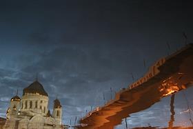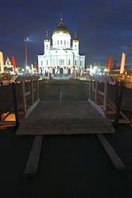 Строительство пешеходного моста от Храма Христа Спасителя к Берсеневской набережной.