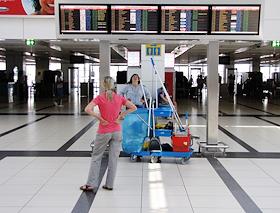 Международный аэропорт Анталии Терминал 2. Зал прибытия. Уборщицы в зале.