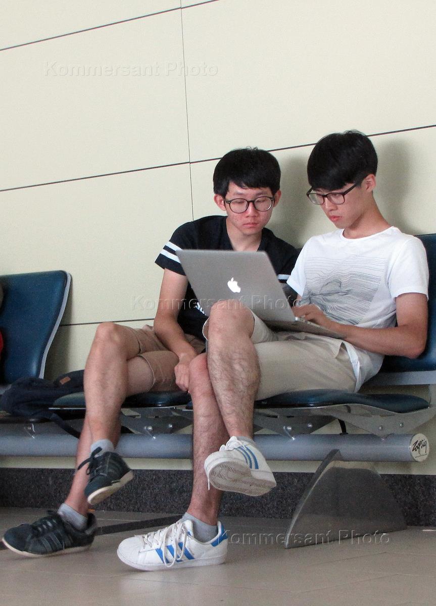 Международный аэропорт Анталии Терминал 2. Азиатские пассажиры в зале ожидания.