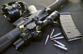 Стрелковый клуб "Гепард". Автомат с оптическим прицелом на столе.