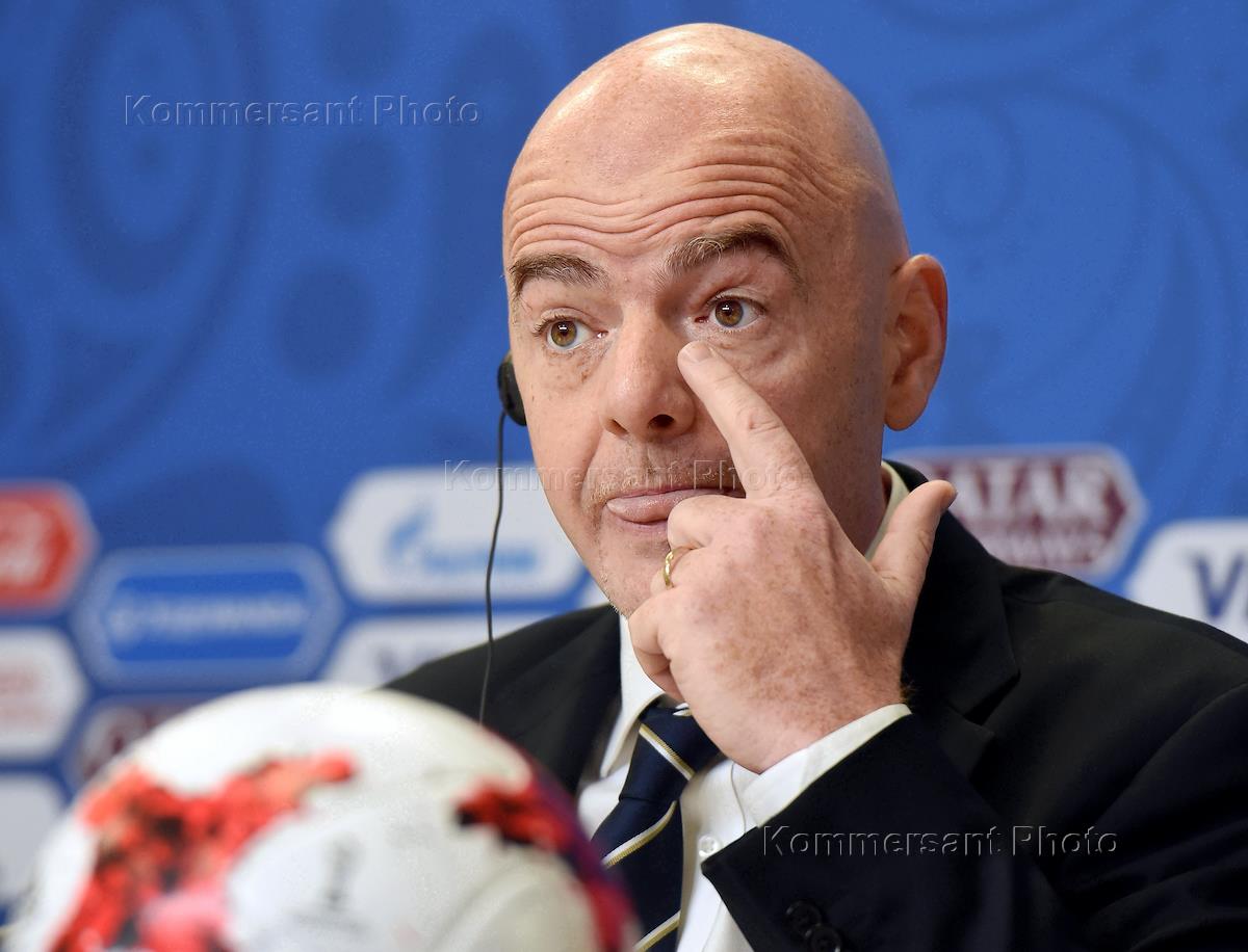 Президент ФИФА Джанни Инфантино во время пресс-конференции по итогам Кубка Конфедераций FIFA.