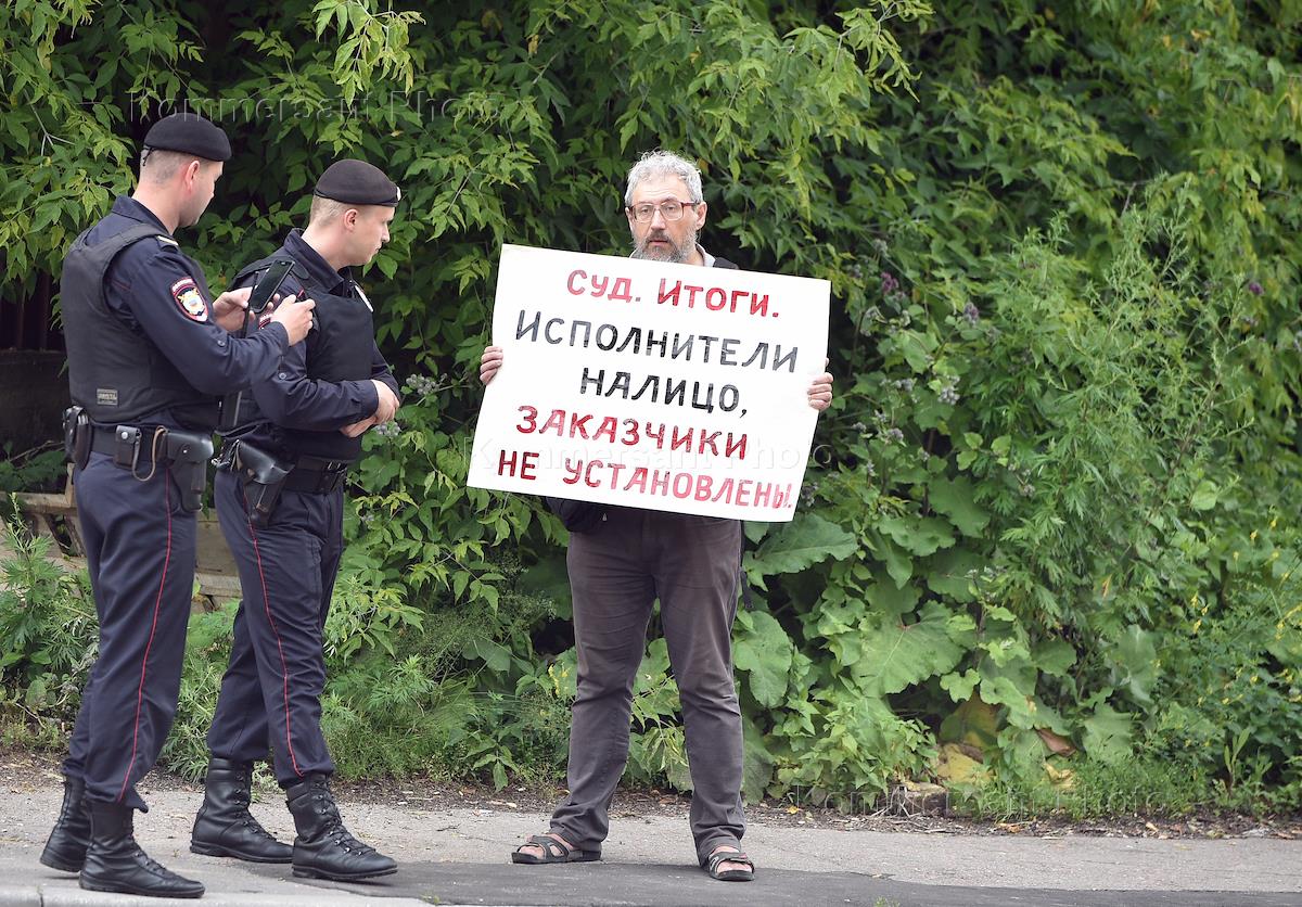 Участник одиночного пикета у здания Московского окружного военного суда, в котором состоялось…