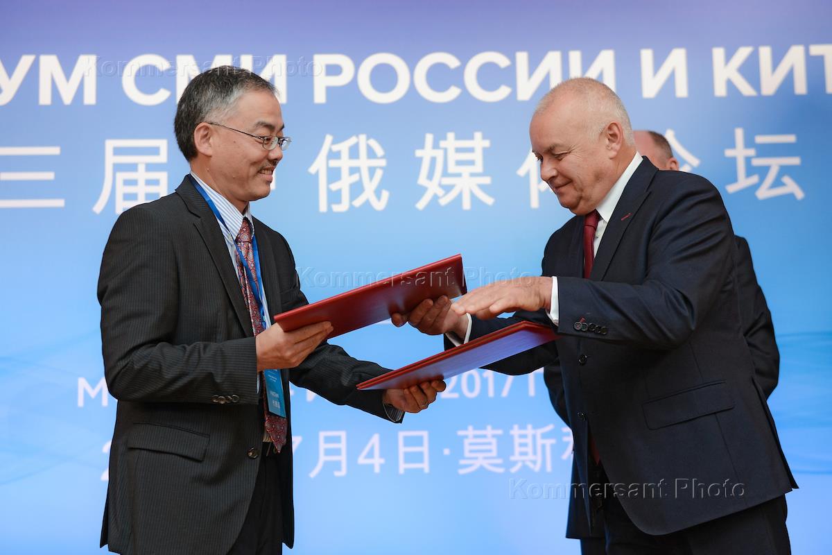 III форум СМИ России и Китая проходит в "Президент-отеле". Слева направо: председатель ВГТРК Олег…