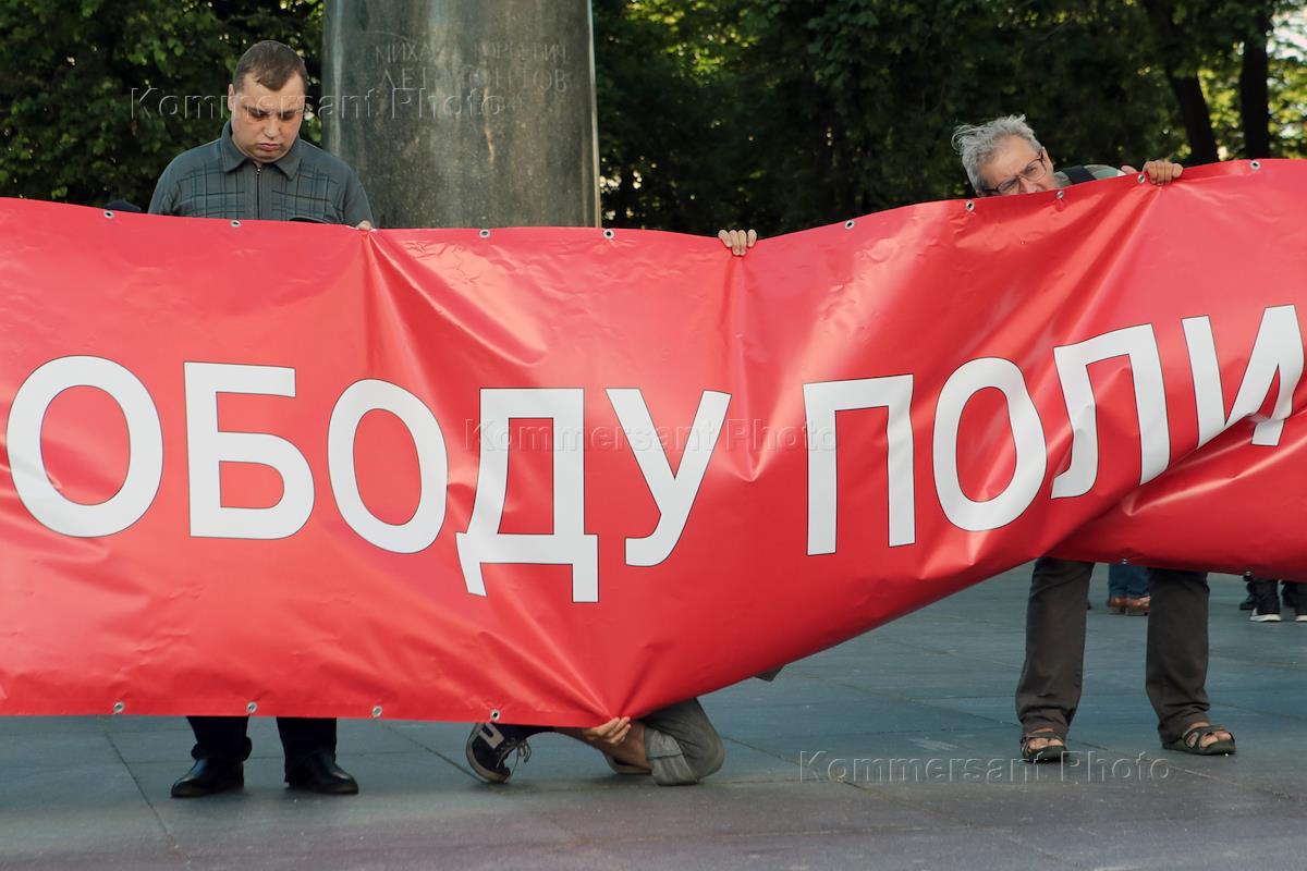 Акция в поддержку политзаключенных прошла возле памятника Лермонтову на Красных воротах. Участники…