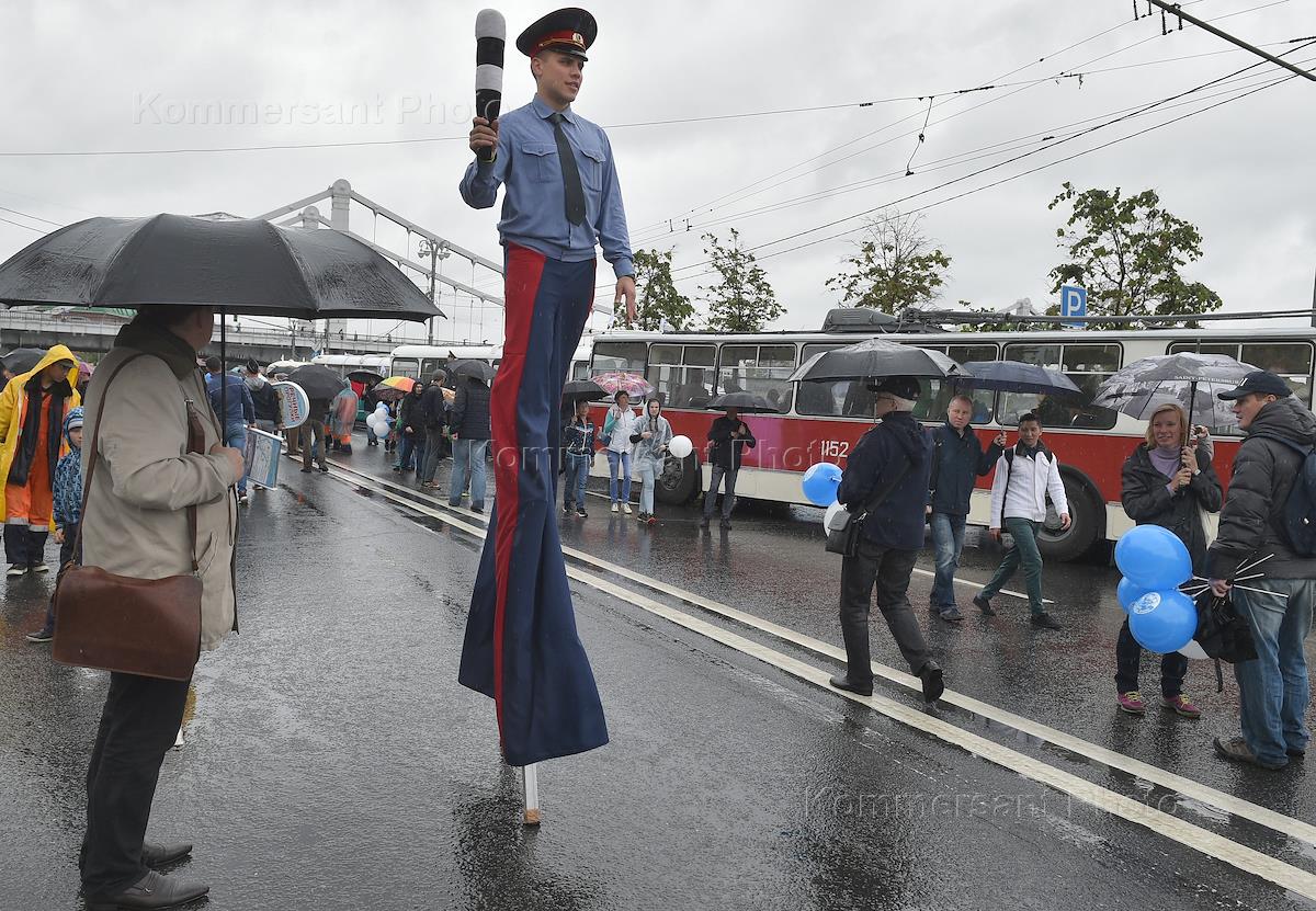 День Московского транспорта отметили на Фрунзенской набережной и в парке Горького. Артист на ходулях…