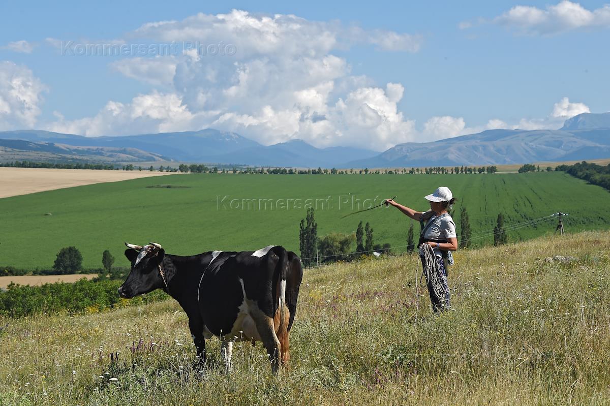 Жанровая фотография. Молодые люди фотографируются на фоне подсолнухов.