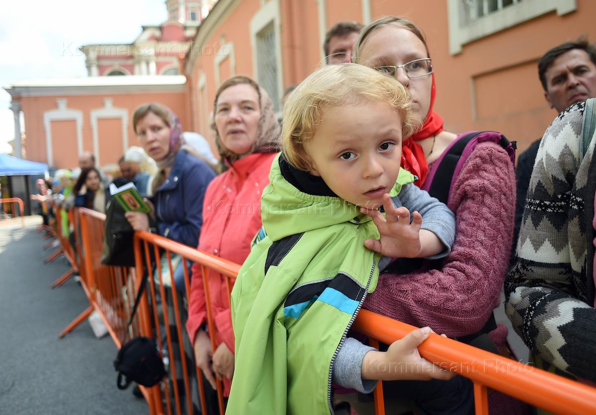 Встреча мощей святителя Николая Чудотворца в в Александро-Невской Лавре. Прихожане в очереди в храм.