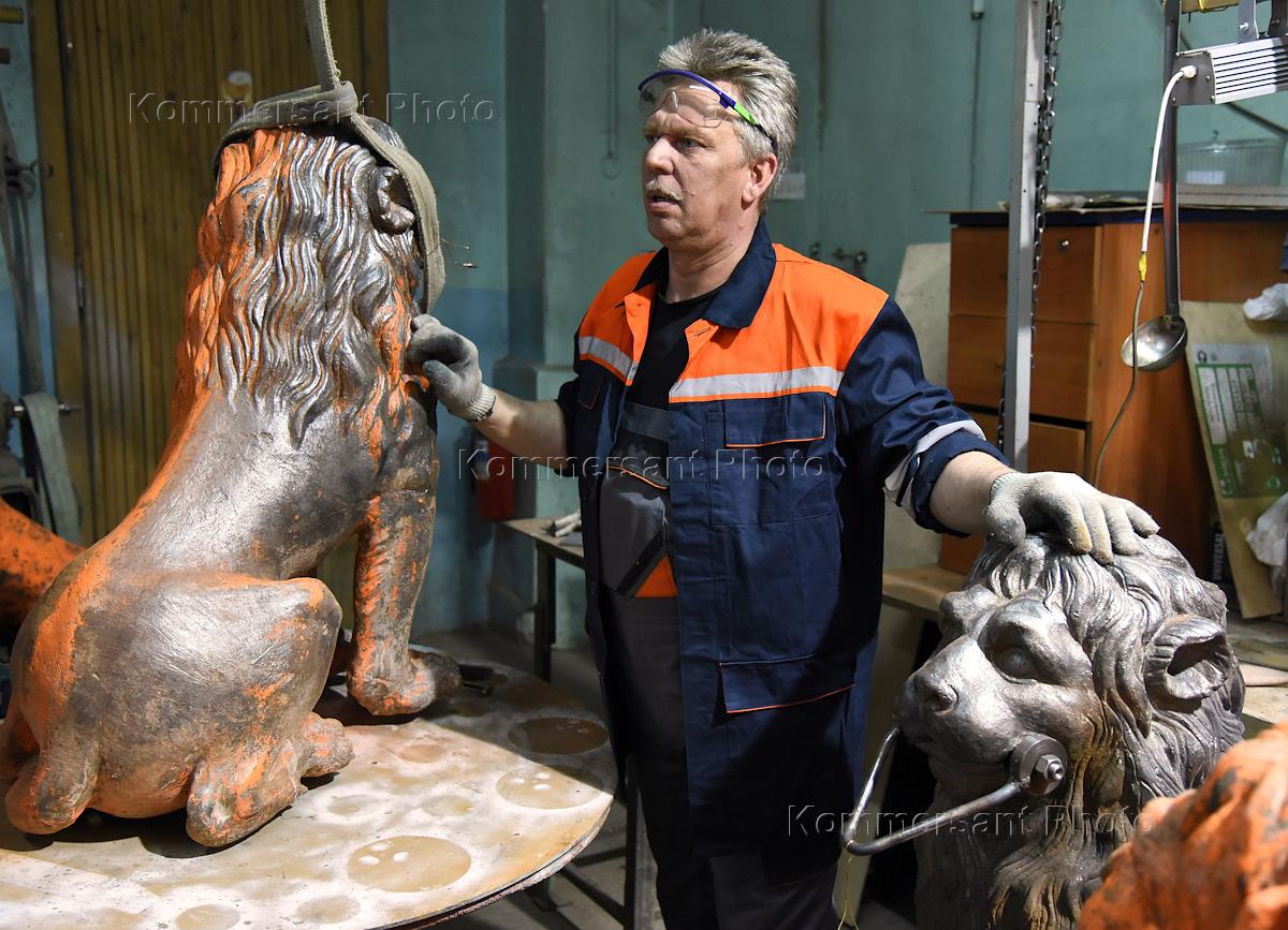Культура Осмотр хода реставрации 29 чугунных львов памятника федерального значения "Дача Безбородко А.А. (Кушелевых-Безбородко)" на Свердловской набережной.