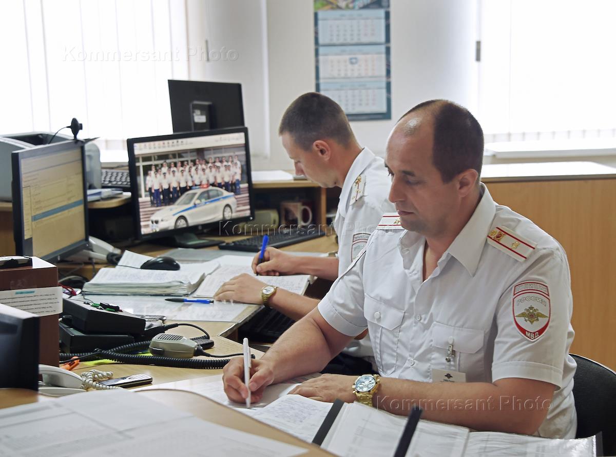 Жанровая фотография. Работа сотрудников полиции ГИБДД в кабинете.