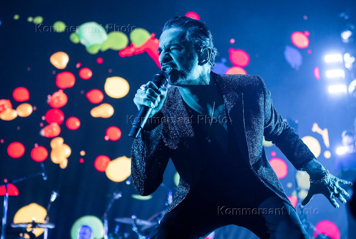Солист группы "Депеш мод" (Depeche Mode) Дэвид Гэхан (David Gahan) во время концерта в СКК.
