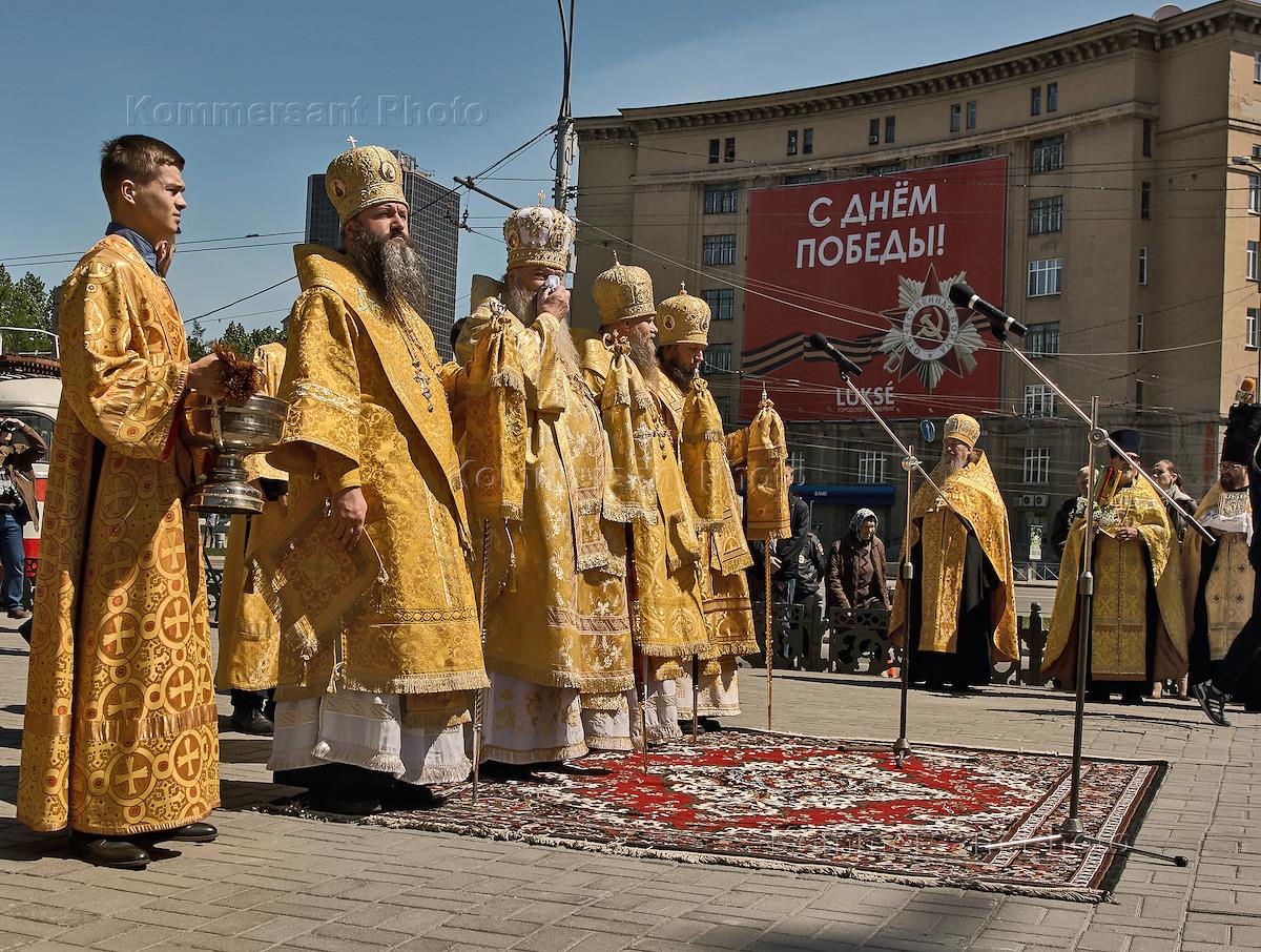 Казачий крестный ход с чудотворным Табынским образом Божией Матери. Священнослужители во время…