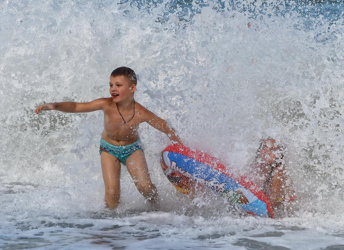 Жанровая фотография. Отдыхающие на пляжах южного берега Крыма. Ребенок с надувным кругом в море.
