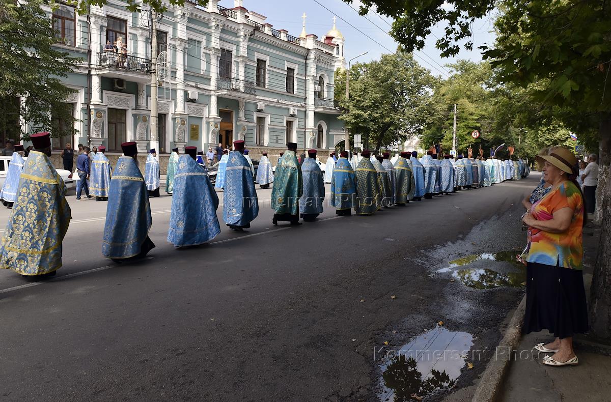 Религия Крестный ход с иконой Божией Матери «Скорбящая» (Симферопольская), которая была прославлена Священным Синодом УПЦ в 1999 году из Свято-Троицкого женского монастыря к Александро-Невскому кафедральному собору в Симферополе.
