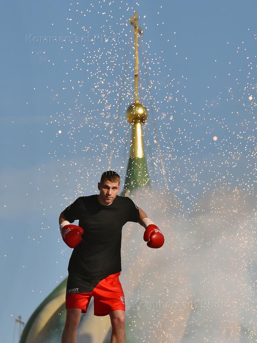 Празнование Дня Российского бокса на Красной площади. Боксер Егор Мехонцев (Россия) (справа) и…