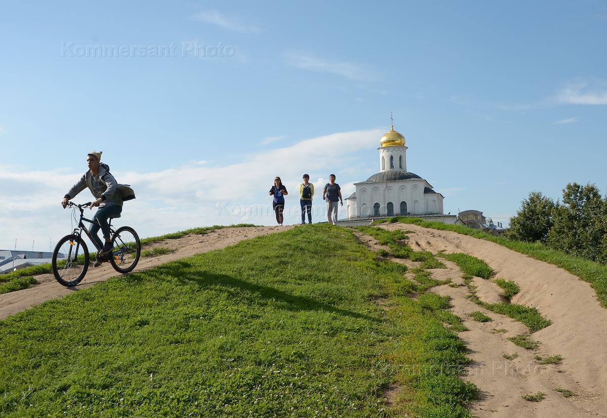 Виды Владимира. Жанровая фотография. Молодые люди сидят на склоне.