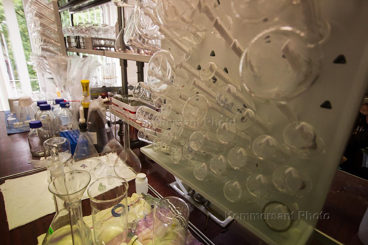 Жанровая фотография. Кран с водопроводной водой в химической лаборатории.