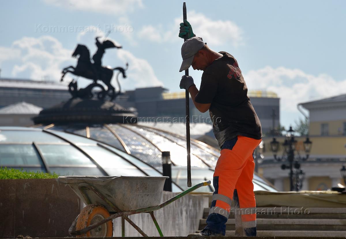 Жанровые фотографии. Укладка тротуарной плитки на Манежной площади.