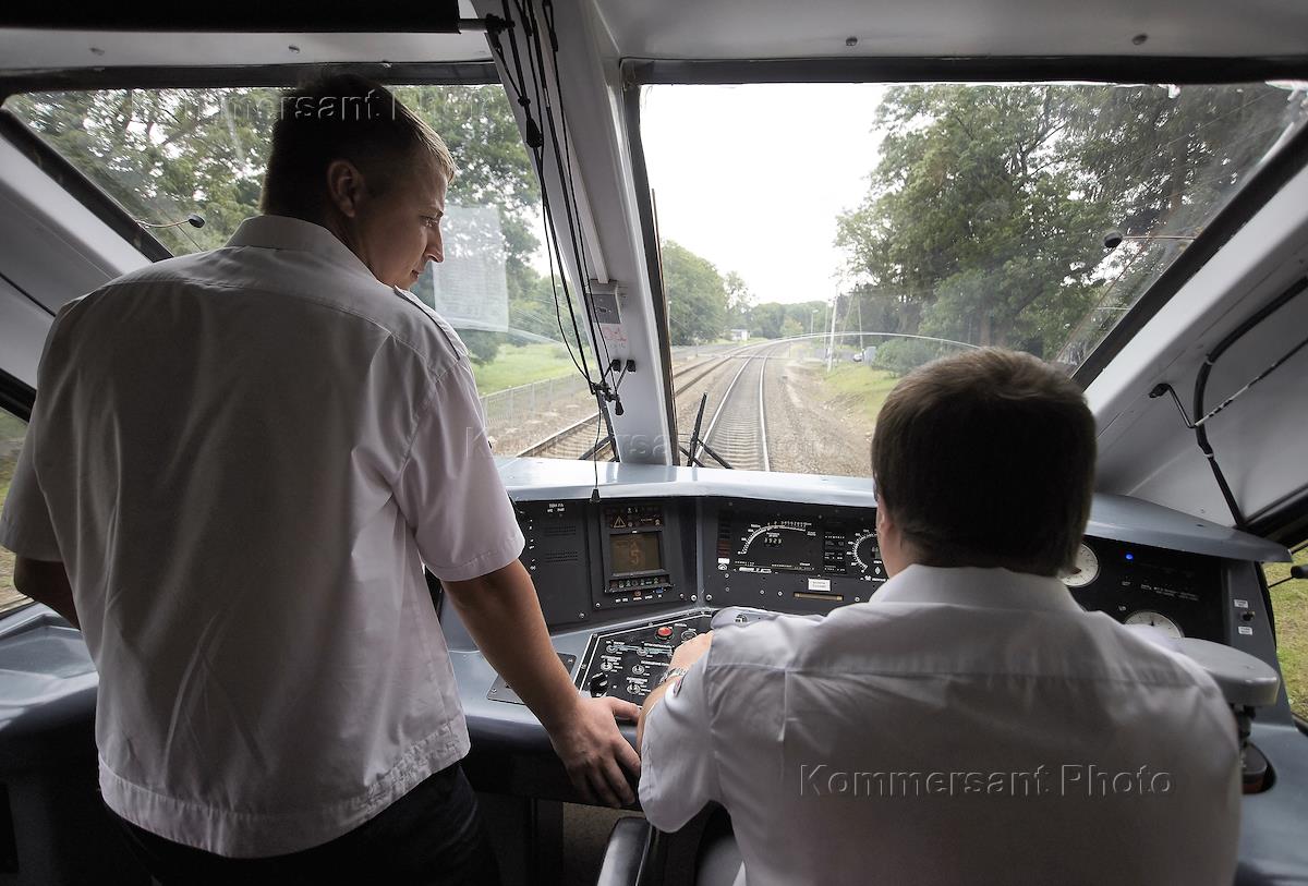 Жанровая фотография. Машинисты в кабине поезда.