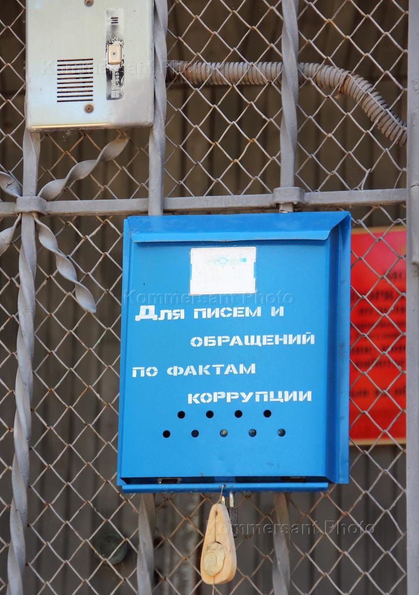 Ящик для писем и обращений по фактам коррупции у входа в антикорруционную службу.