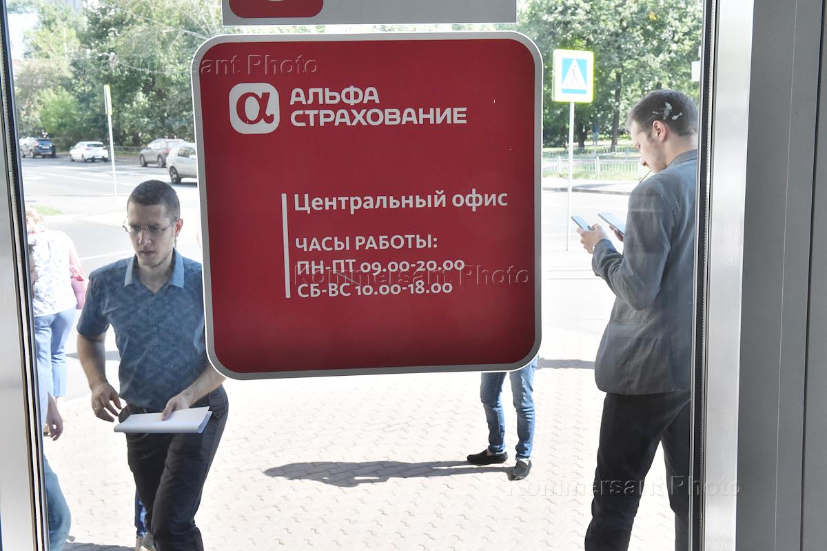 Работа офиса компании "Альфа-страхование". Сотрудники и клиенты компании во время оформления полисов…