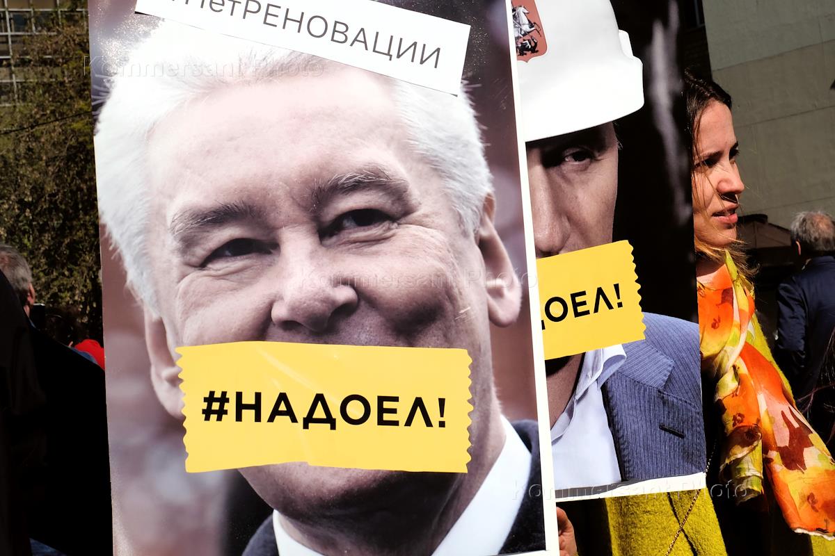 Митинг против реновации пятиэтажек прошел на проспекте Сахарова. Участники c плакатами во время…