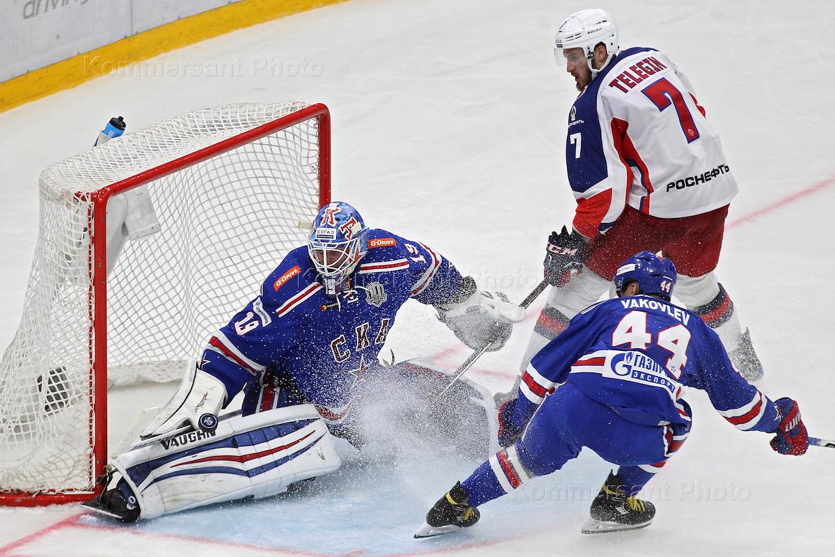 Спорт Континентальная хоккейная лига (КХЛ). Кубок Открытия регулярного чемпионата КХЛ. Матч между командами СКА (Санкт-Петербург) и ЦСКА (Москва) прошел в Ледовом дворце.