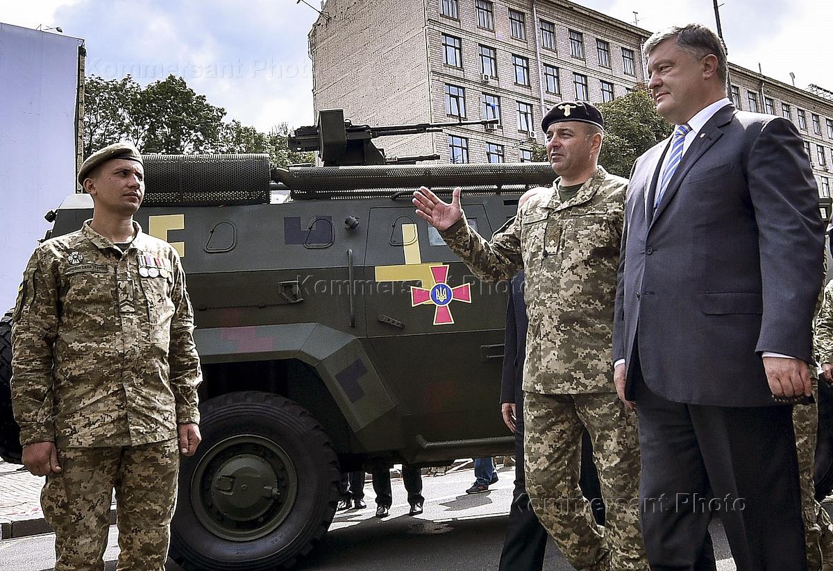 Президент Украины Петр Порошенко во время осмотра выставки вооружения и военной техники по случаю 26-й годовщины независимости Украины.