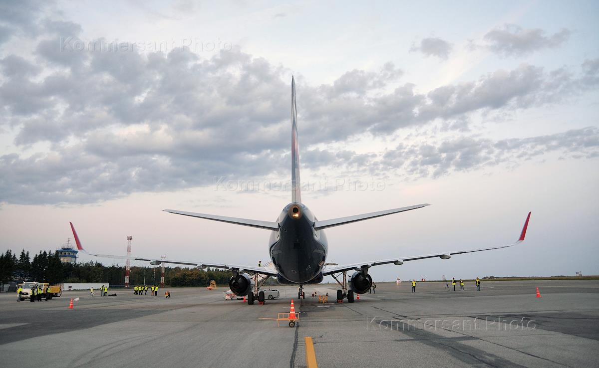 Жанровая фотография. Самолет компании "Аэрофлот" на взлетной полосе во время предполетного…