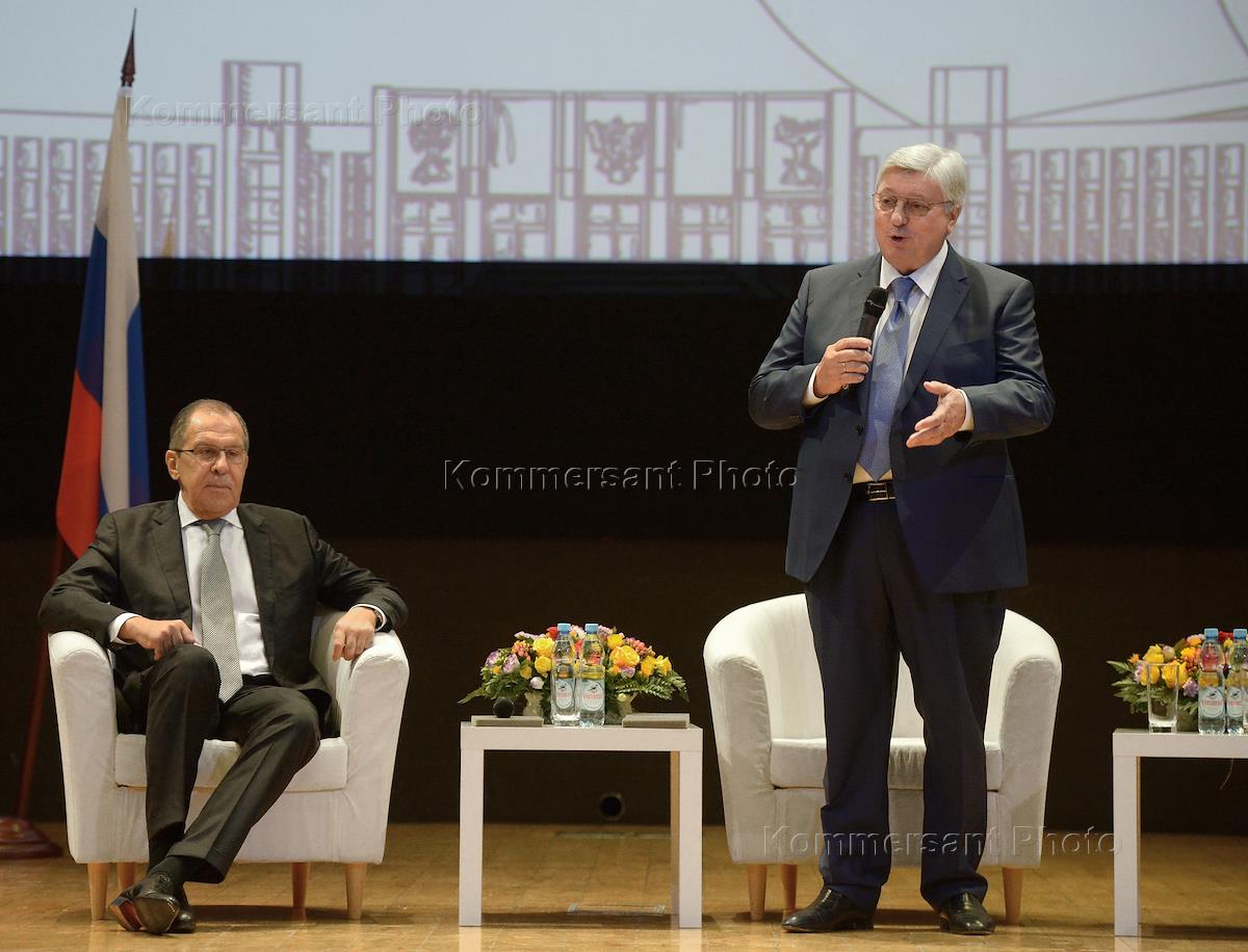 Ректор МГИМО Анатолий Торкунов (справа) во время встречи министра иностранных дел России Сергея…