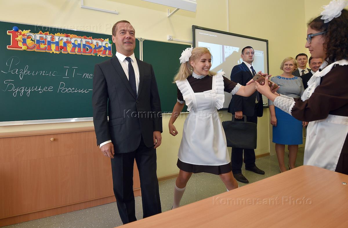 Председатель правительства России Дмитрий Медведев во время праздничных мероприятий Дня знаний в…