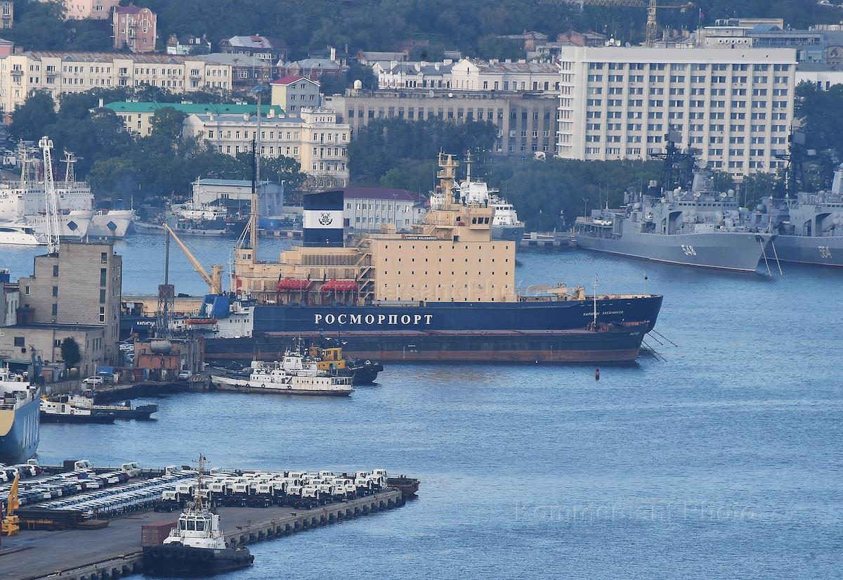 Морской порт города Владивосток. Корабль "Росморпорт". Ледокол "Капитан Хлебников".