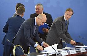 Выставка "Импортозамещение" прошла в Крокус-экспо. Слева направо: председатель правительства России…