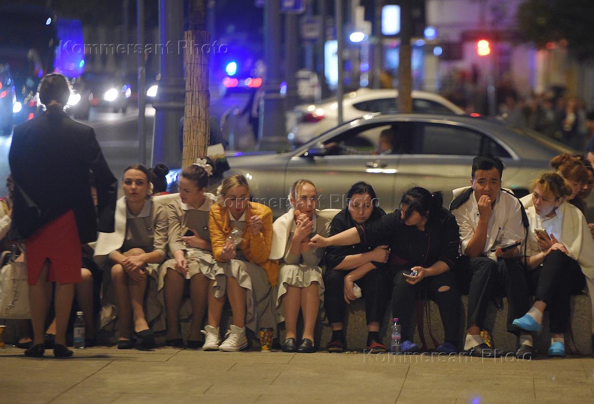 Эвакуация людей из гостиницы "Националь" после анонимных звонков о минировании.