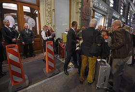 Эвакуация постояльцев гостиницы "Националь" после анонимных звонков о минировании.