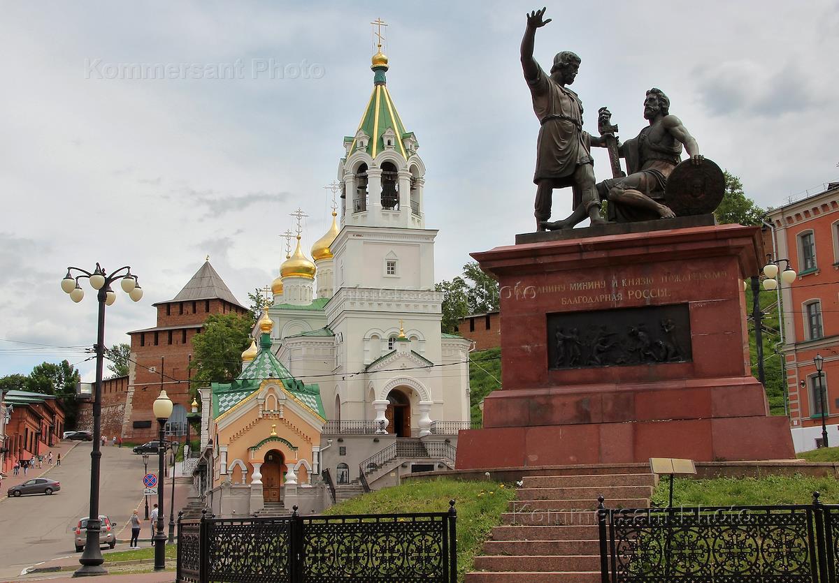 Виды Нижнего Новгорода. Площадь Народного Единства. Памятник Минину и Пожарскому. Храм Рождества…