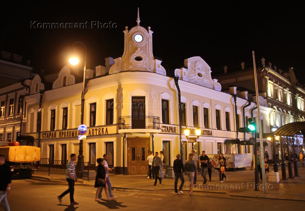 Виды Казани. Пешеходная улица Баумана в ночном освещении. Старая Проломная аптека.