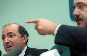 Предприниматель Борис Березовский (слева) во время пресс-конференции, на которой он объявил о…