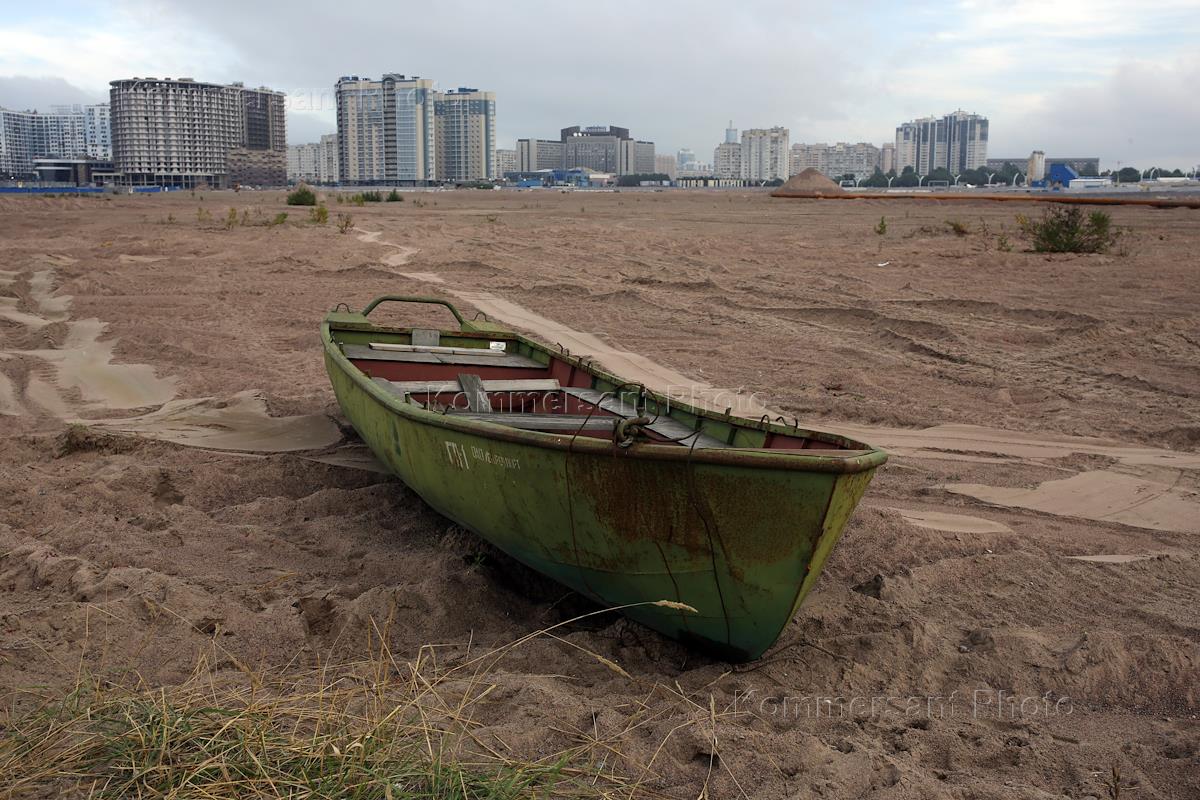 Работы по расширению намывных территорий в западной части Васильевского острова.