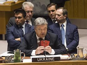Президент Украины Пётр Порошенко во время заседания Совета безопасности ООН по миротворчеству на уровне глав делегаций в штаб-квартире ООН.