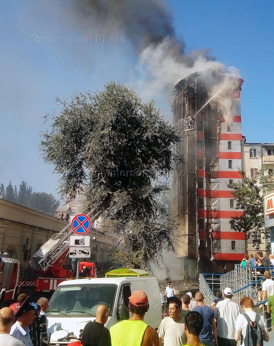 Пожар в десятиэтажном отеле в центре Ростова-на-Дону.
