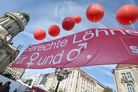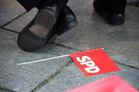 Парламентские выборы в Германии. Предвыборная агитация. Флаг Социал-демократической партии в руках…